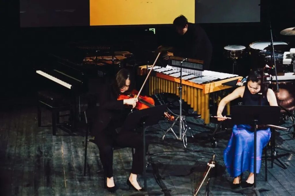 曲子伊始,乐器即演奏出的风声、沙子声、清脆的铃声、草被吹动发出的响声、人内心的空寂声……王楚婷的二胡,李梦真的中提琴,以及燕嘉熠以弓子轻拉颤音琴,他们铺垫出整个曲子的底色。